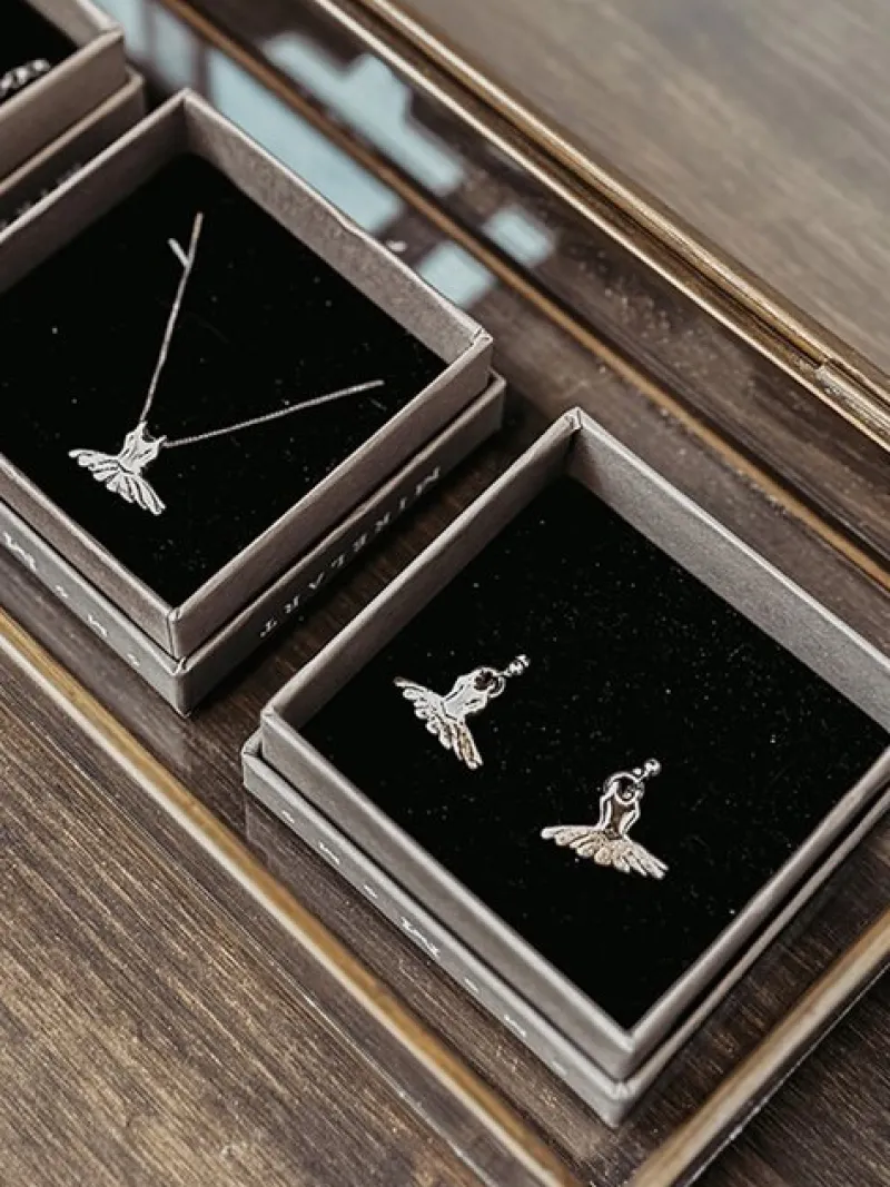 Super fine sølv ballet ørestikkere. Små tutuskørter