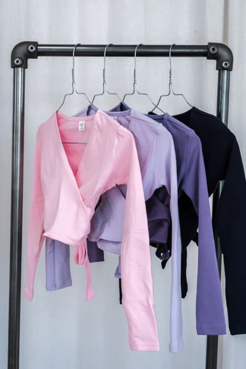 Slå om bluse til at tage over ballet eller gymnastikdragten som bindes på ryggen