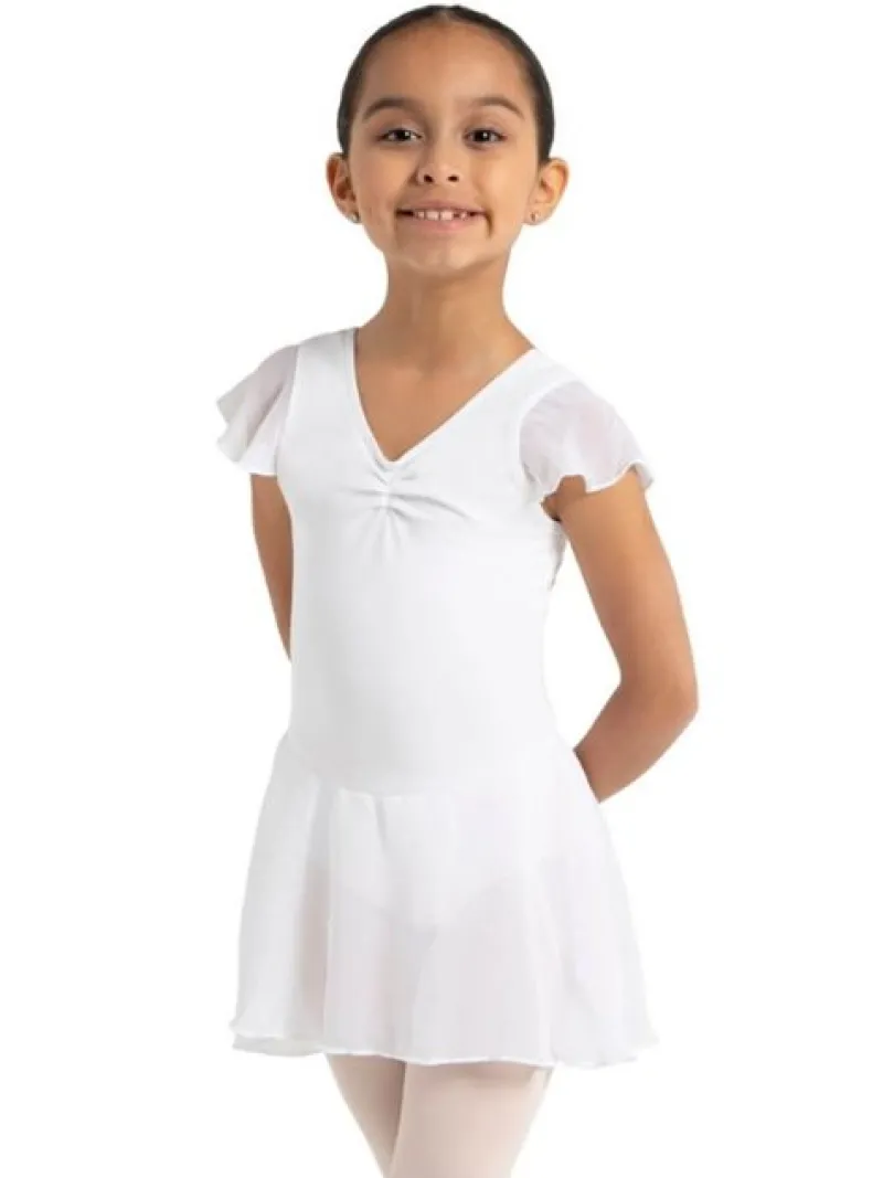 Børn Dansebutikken Gymnastikkjole Piger|Balletkjole Piger-Capezio hvid dragt m.flot skørt til piger