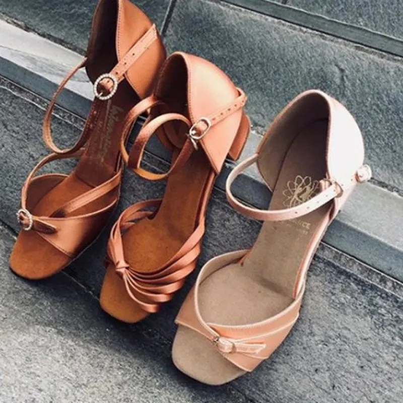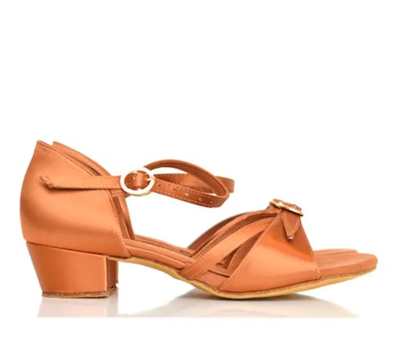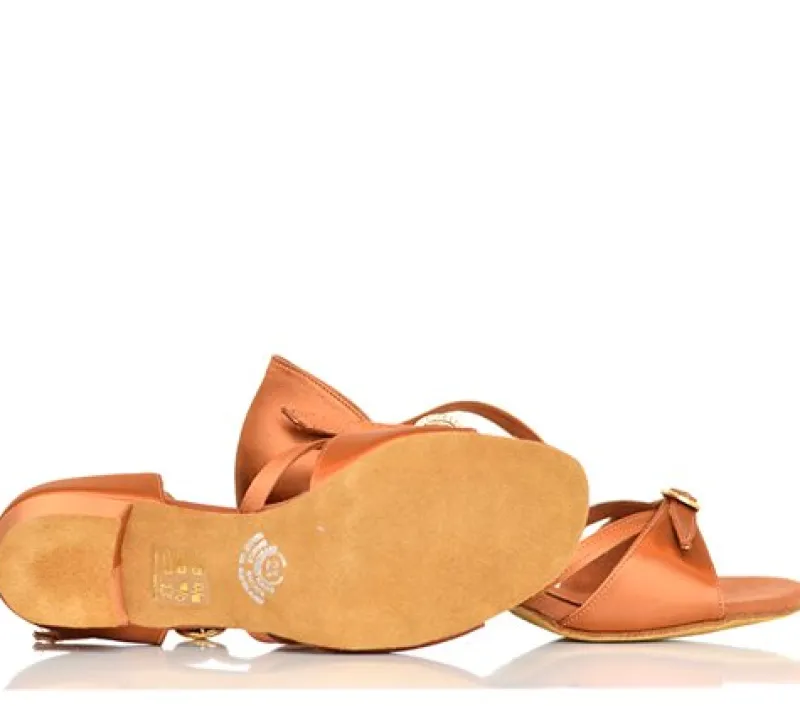 International pige dansesko dark tan satin. Hæl 3,5 cm cuban