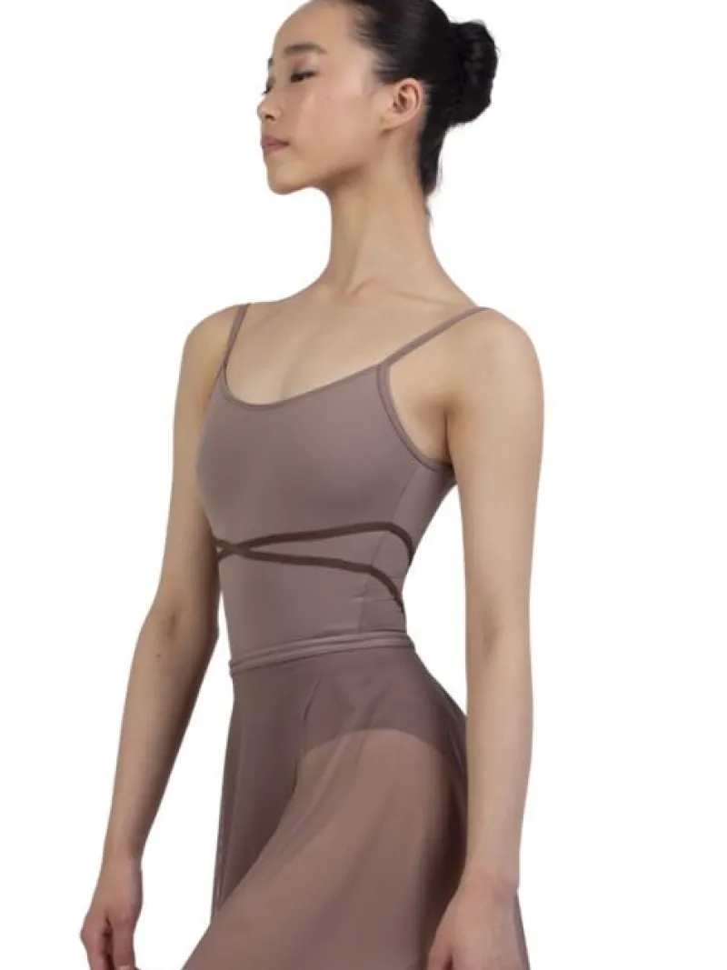 Grishko coffee farvet balletdragt med virkelig flotte satinbånd syet på ved taljen. Tynde fine justerbare stropper. Skørtet købes seperat.