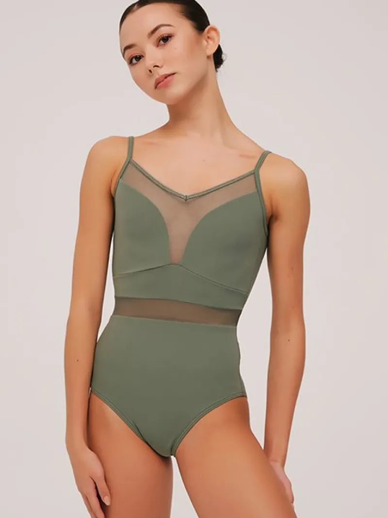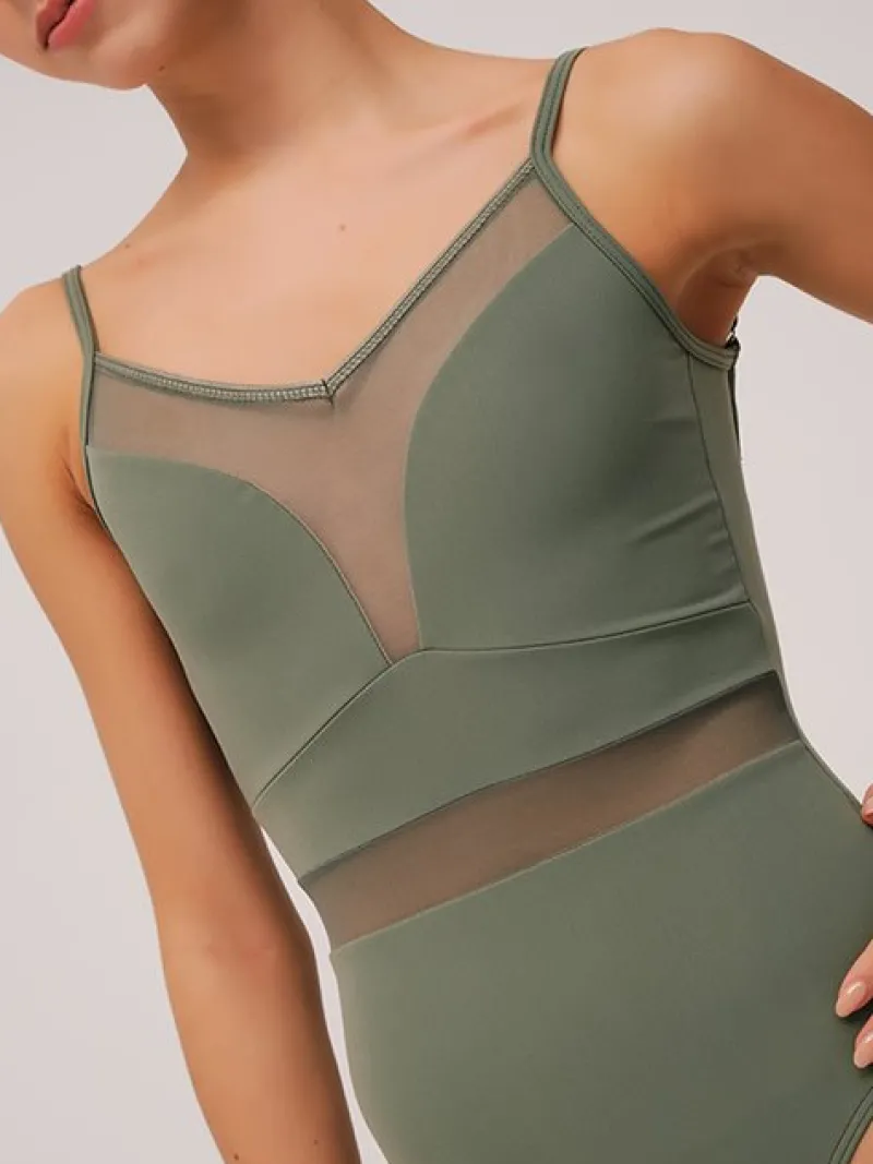 Dame Dansebutikken Balletdragter Damer-Grishko olivengrøn dragt med mesh udskæringer