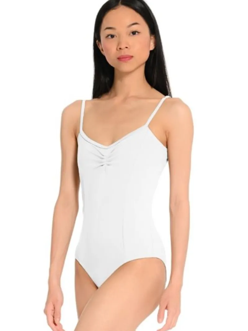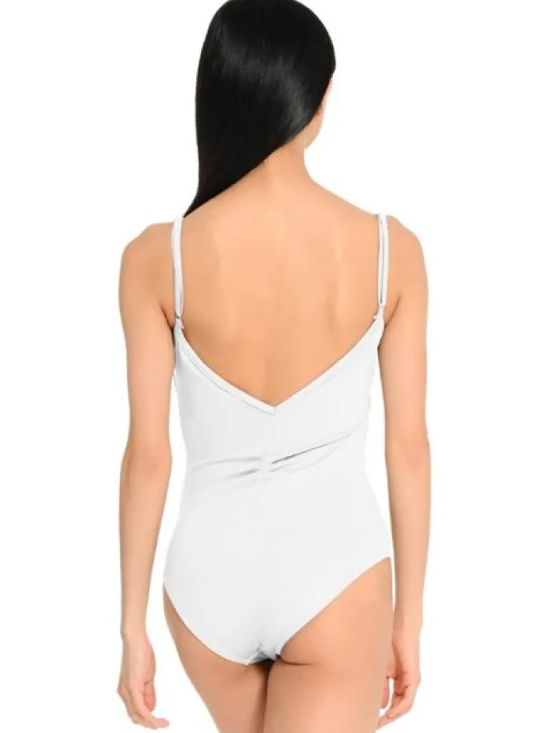 Elegant hvid dragt med prinsesse sømme og tynde justerbare stropper. Flot v- ryg og rynkedetalje både foran og bagpå.