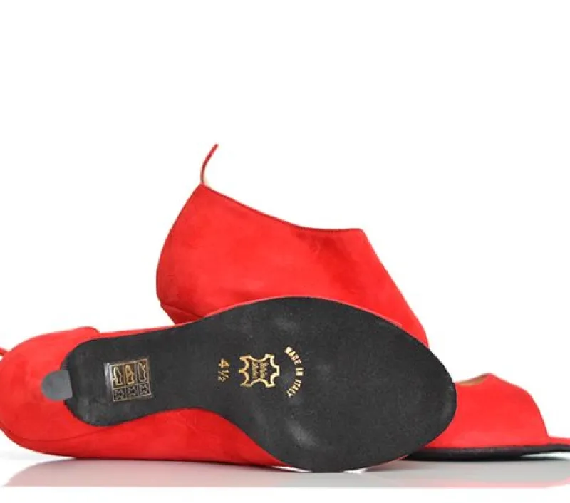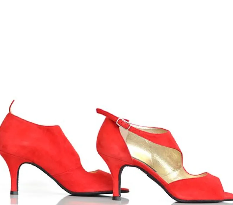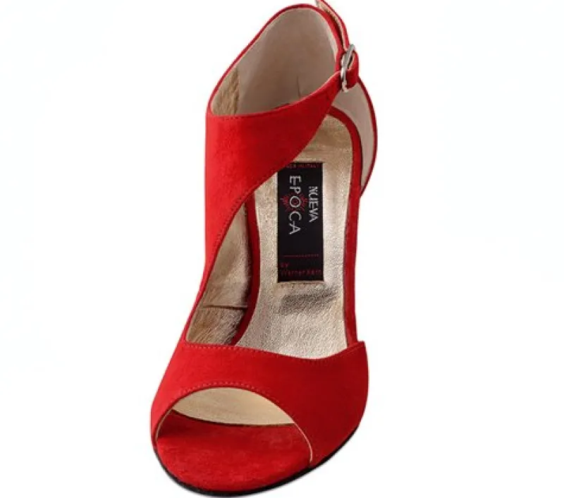 Nueva Epoca by Werner Kern – en af de virkelig smukke dansesko af handske blødt eksklusivt rødt ruskind. Indersiden er skoen lukket, næsten som en ankelstøvle. Ydersiden har et look som en let sommersandal.