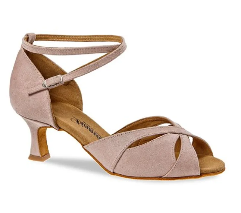 Glimmer “rosa” flot dansesko til damer med 5 cm hæl er en håndlavet diamant-dame latin dansesko, produceret i Tyskland. Skoen tilpasser sig foden med sin forfod og har en trinløs justerbar trykknapspænde, der gør det nemt at åbne og lukke den krydsende hælrem. Med en elegant 5 cm flared hæl og normal bredde, er skoen behagelig at danse i. Den har en åndbar indvendig foring og fugtabsorberende mikrofiber af italiensk premiumkvalitet. Det øverste materiale er lavet af nude/rosa velour med sølvrefleks og kommer fra Italien. Perfekt til dans, bryllup og fest.