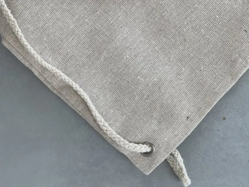 Smuk mulepose i hør med snore så den også kan bruges som rygsæk. Perfekt til gymnastiksko og tøj. Flot guld GYM tryk.