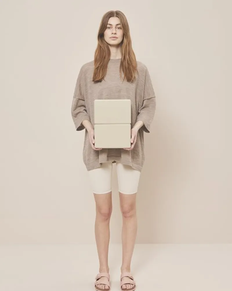 Moonchild yogablok i lys sandfarvet. Letvægts yogablok er fremstillet af 55% genbrugt EVA-skum, hvilket sikrer både miljøvenlighed og holdbarhed. Det ergonomiske design og den glatte, sandfarvede overflade giver et fremragende greb, som hjælper dig med at forbedre dine stræk og nå dybere ind i stillingerne. Perfekt for både nybegyndere og erfarne yogier.