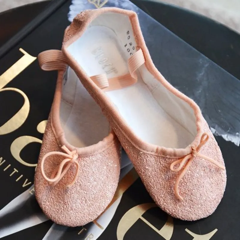 Dansebutikken Balletsko Bløde-Bloch rosa skind balletsko med glimmer