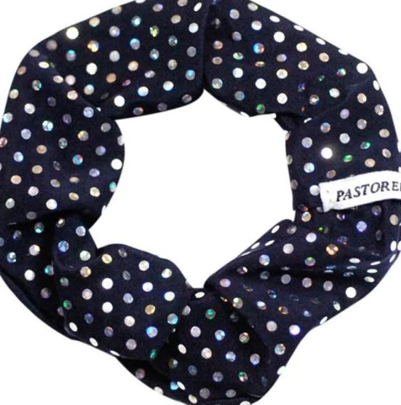 Mørkeblå scrunchie med flotte trykte palietter til ballet, gymnastik og dansehår