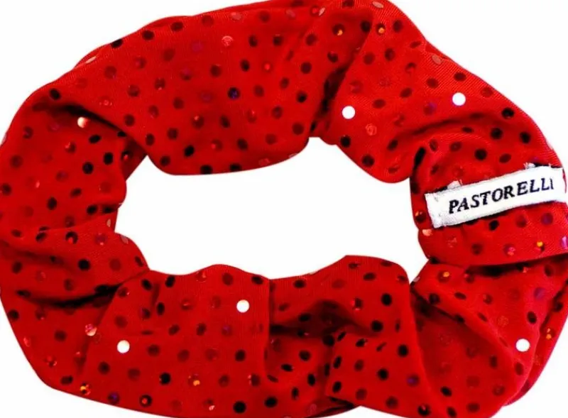 Dansebutikken Rhinsten/smykker|Gymnastik Hårtilbehør-Rød hårelastik med trykte palietter