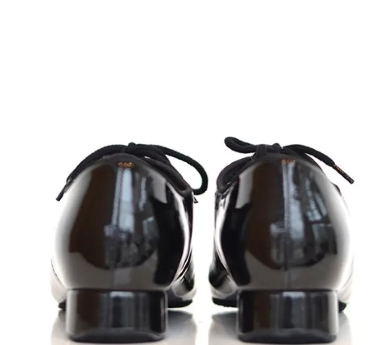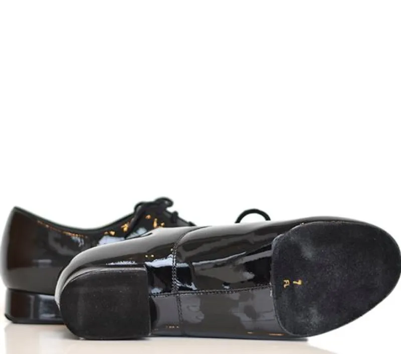 Ray Rose standard dansesko til teens og herrer i sort blød holdbar lak med splitsål. Hæl 1″ (2,5 cm)
