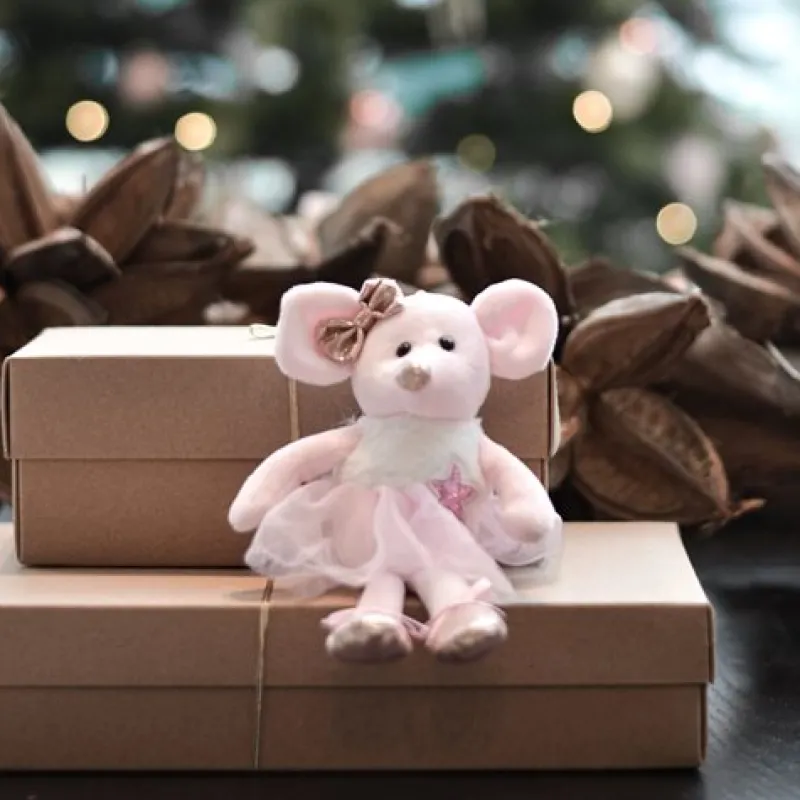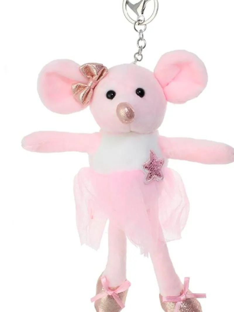 Sød rosa ballet mus med tutuskørt. Kan sættes fast på tasker – og nøgler kan sættes på