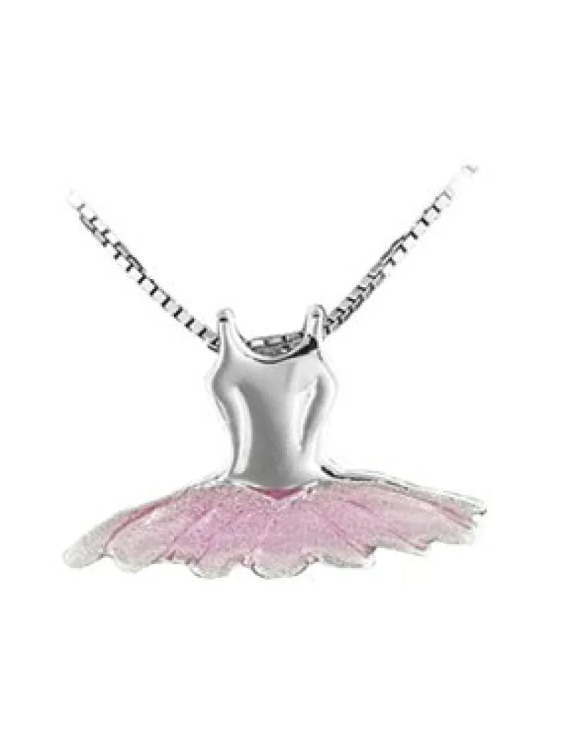 Smuk ballethalskæde med lille vedhæng af tutu kjole med rosa skørt. Kæde 40-45 cm justerbar i venetiansk sølv 925