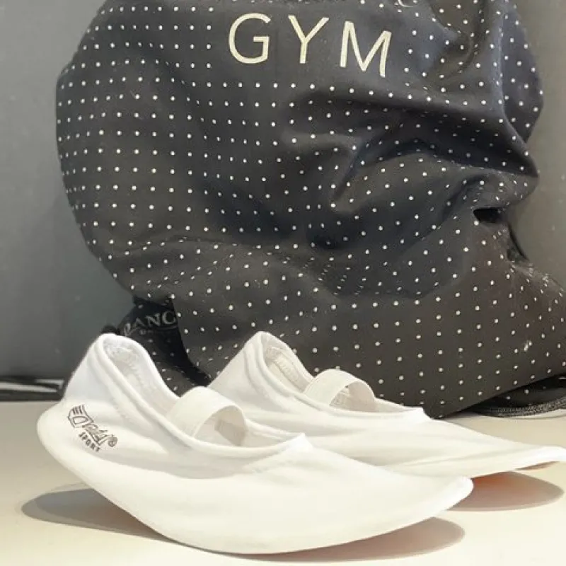 Anniel hvide gymnastiksko til børn i blød stretch stof med skridsikker gummisål