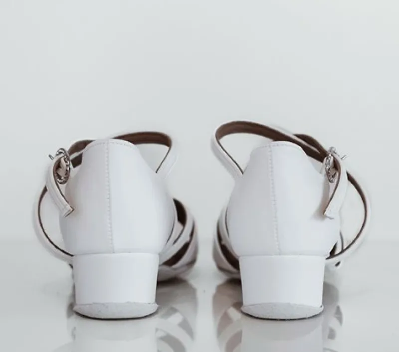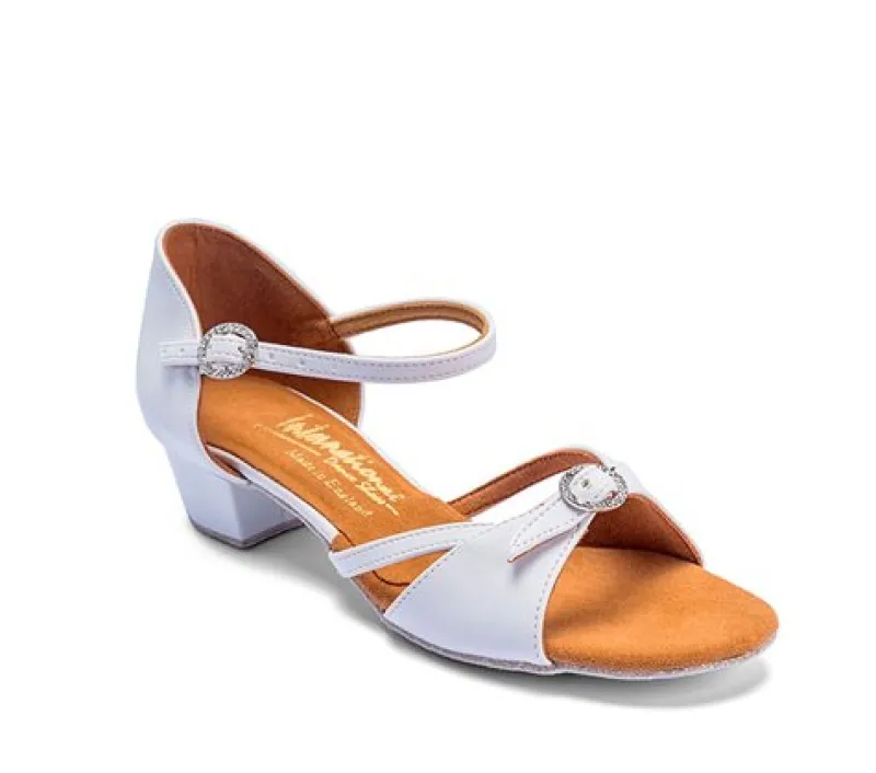 Natasha pige hvid dansesko International er perfekt til piger, der ønsker komfort og stil. Disse sko er lavet af hvidt skind med en 3,5 cm cubansk hæl. Med et flot spænde med sten og en lang rem (som på billede 2), der støtter godt henover foden, er disse regulerbare dansesko velegnede til både smalle, medium og brede fødder.