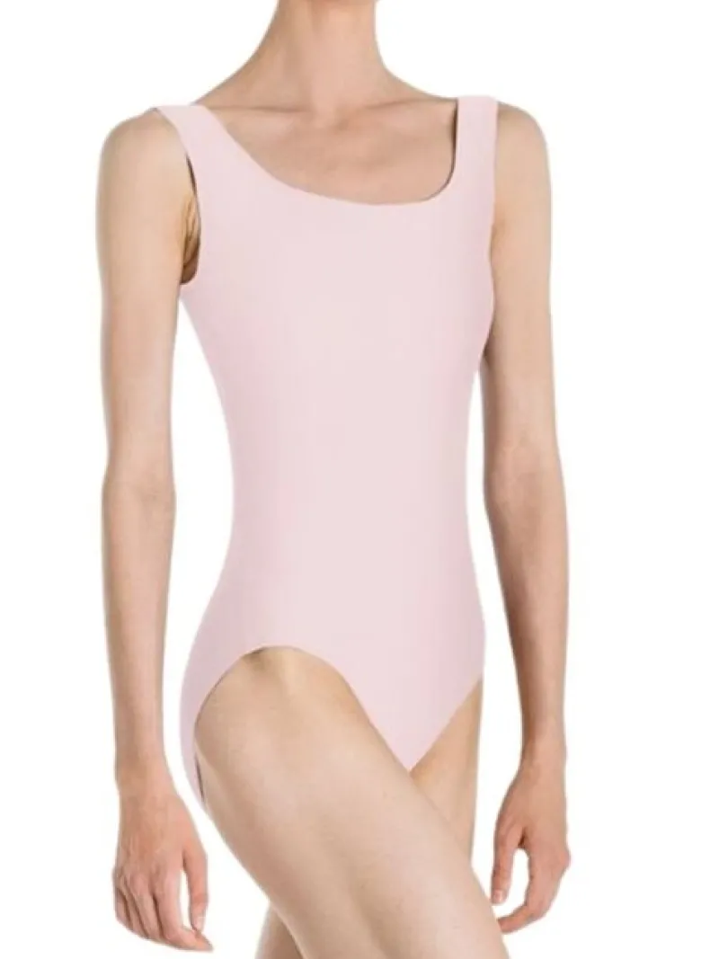 Denne yndige dragt fra Wear Moi har en smuk lyserød farve og er udstyret med tankærmer samt en scoop-halsudskæring både foran og bagpå, hvilket giver et enkelt og elegant udseende. Designet er specielt skabt for at sikre en behagelig pasform og god dækning. Dragten er lavet af mikrofiber materiale, der er kendt for sin blødhed, åndbarhed og holdbarhed, hvilket sikrer optimal komfort og en fremragende pasform. Denne klassiske silhuet er det perfekte valg for dansere, der ønsker et stilfuldt og behageligt udseende under træning.