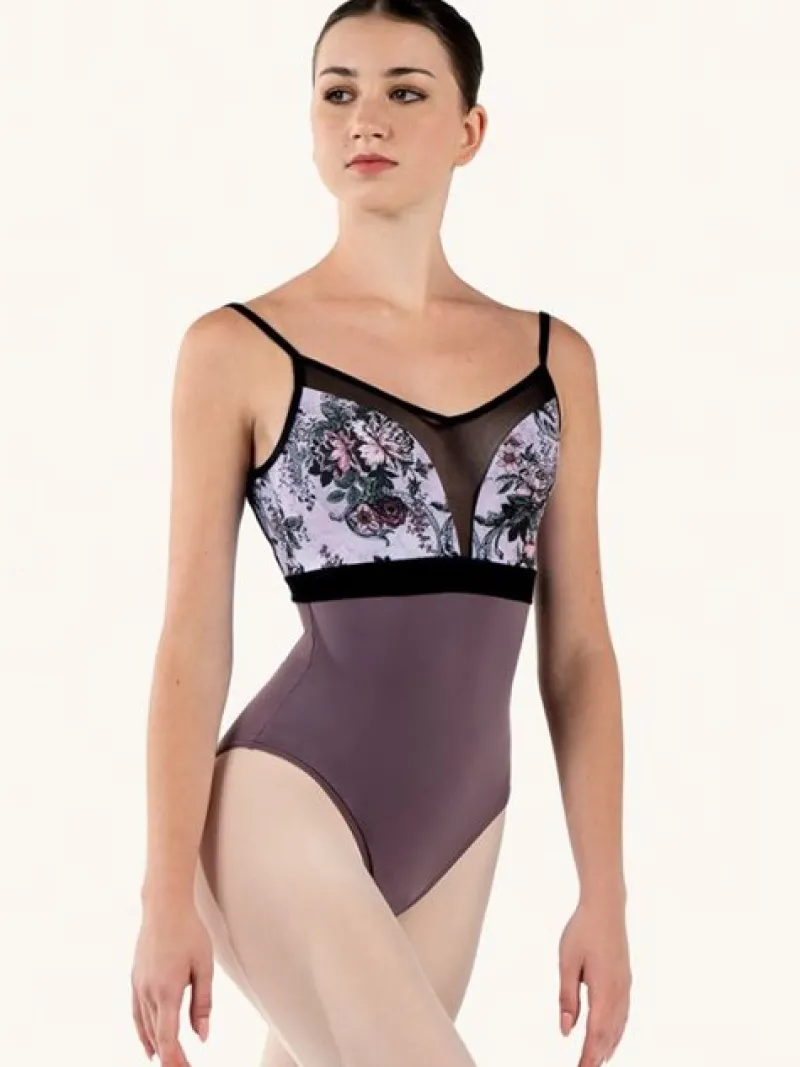 Denne smukke Grishko dragt i støvet lilla er perfekt til dans og ballet. Dragten har elegante mesh-detaljer og blomster, der giver et unikt twist til din performance. Den er fuldt foret på fronten og lavet af 80% polyamid og 20% elastan. Sayana dragten har tynde justerbare stopper og et fuldfarvet blomstertableau på brystet. De kunstfærdige kontraster mellem blomsterne og mesh-indsatsen, samt det fløjlsbånd, der omslutter taljen, tilføjer ekstra charme. De sammenflettede stropper på bagsiden gør denne dragt ekstra stilfuld.