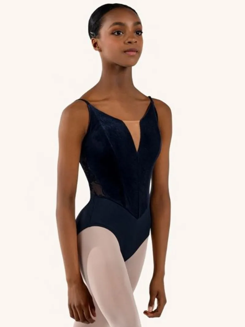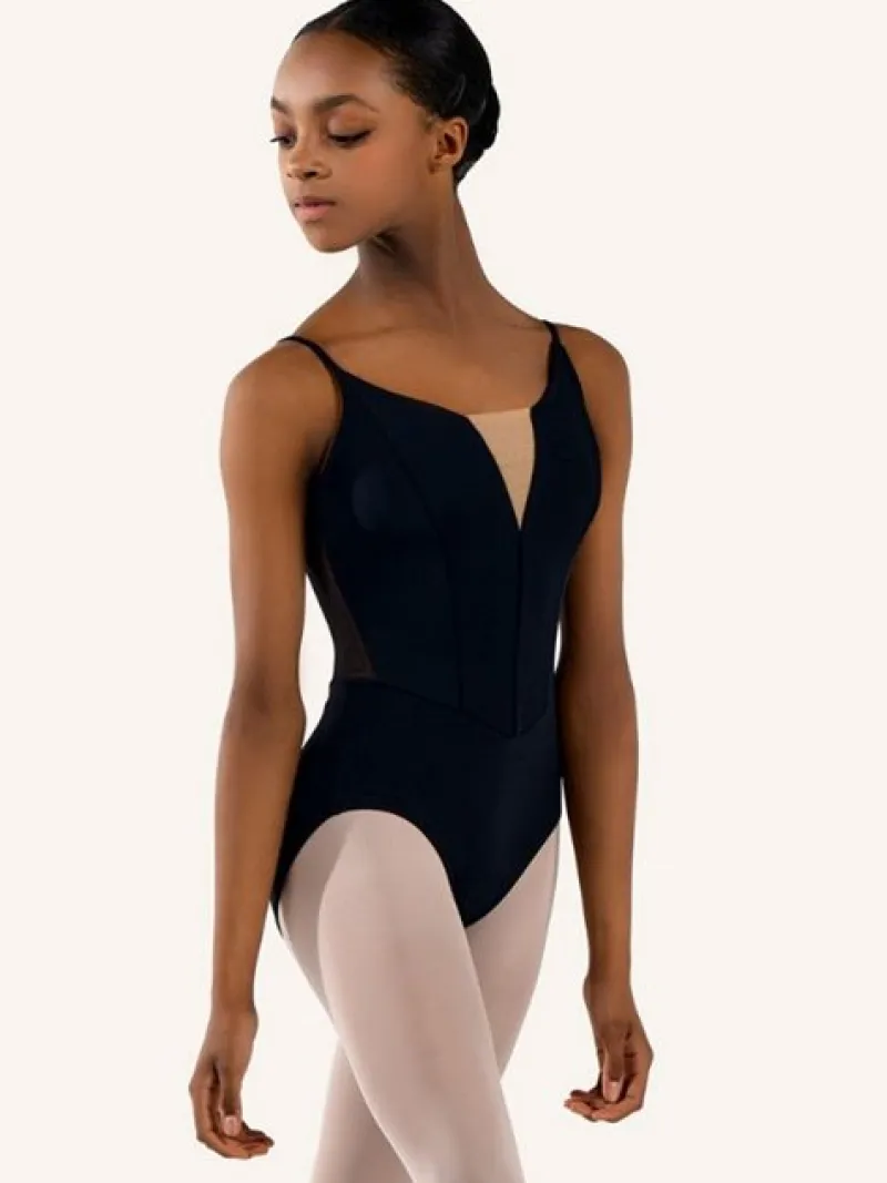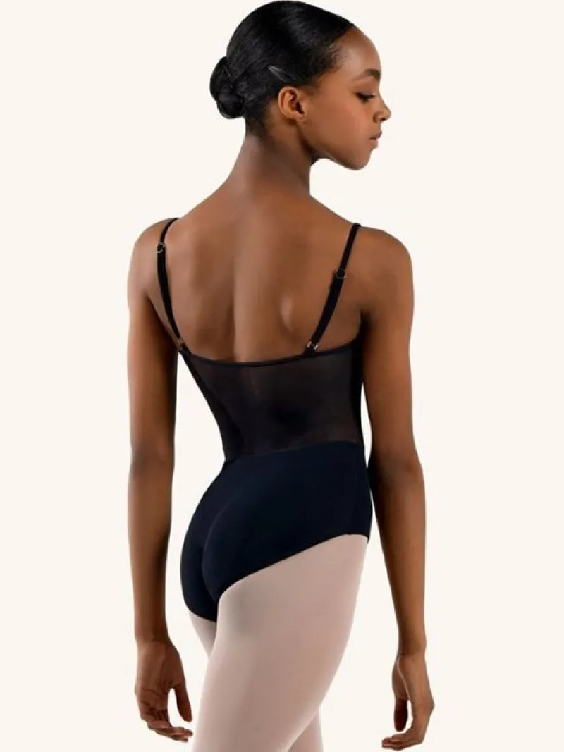 Opgrader din dansegarderobe med denne elegante Grishko dragt i sort. Med sine korte ærmer, høj hals og flotte meshdetaljer på ryggen, er denne dragt både enkel og smuk. Fronten er lavet af blød velour med en subtil hudfarvet meshdetalje. Denne dragt er skabt med en pæn pasform, der passer til enhver danser. Lavet af 80% polyamid og 20% elastan for optimal komfort og holdbarhed.