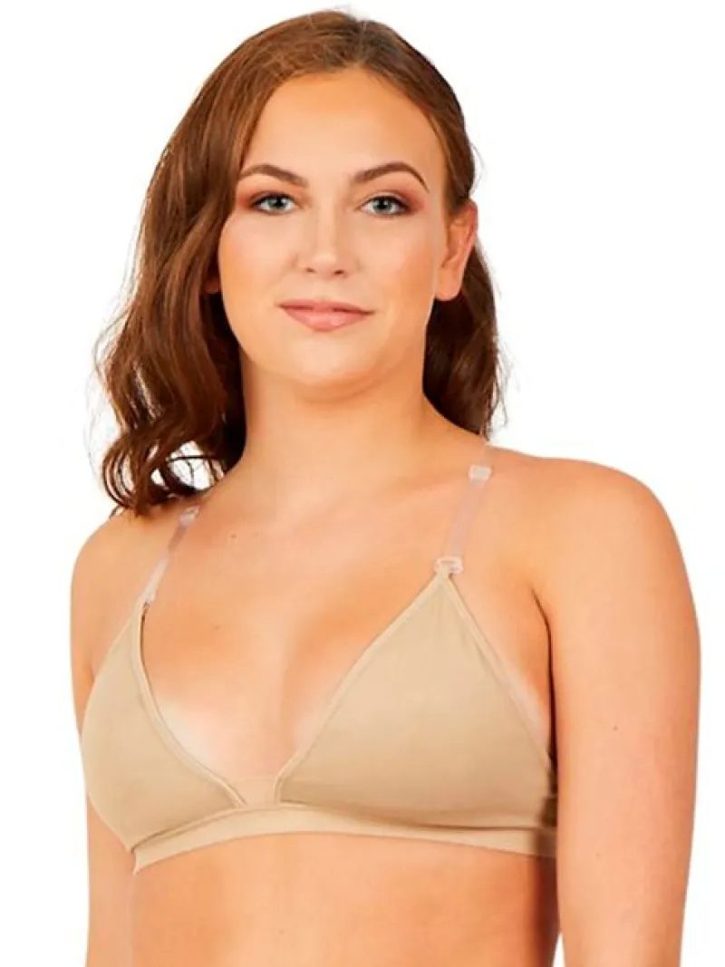 Capezio trekants bh top med klare skulderstropper og silikone strop over ryggen der giver støtte på en diskret måde – perfekt til dybe udskæringer både for og bag til