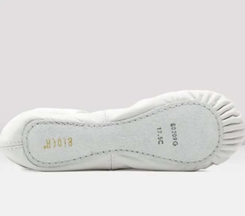 Bloch hvide bløde balletsko i skind med fuldsål. C= normal bredde