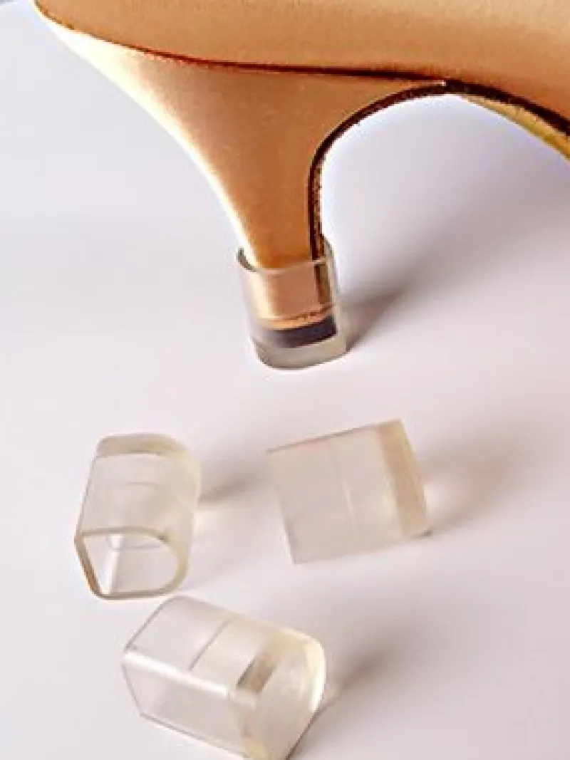 Klare plastbeskyttere bruges også på stiletter for at beskytte trægulve i hjem.