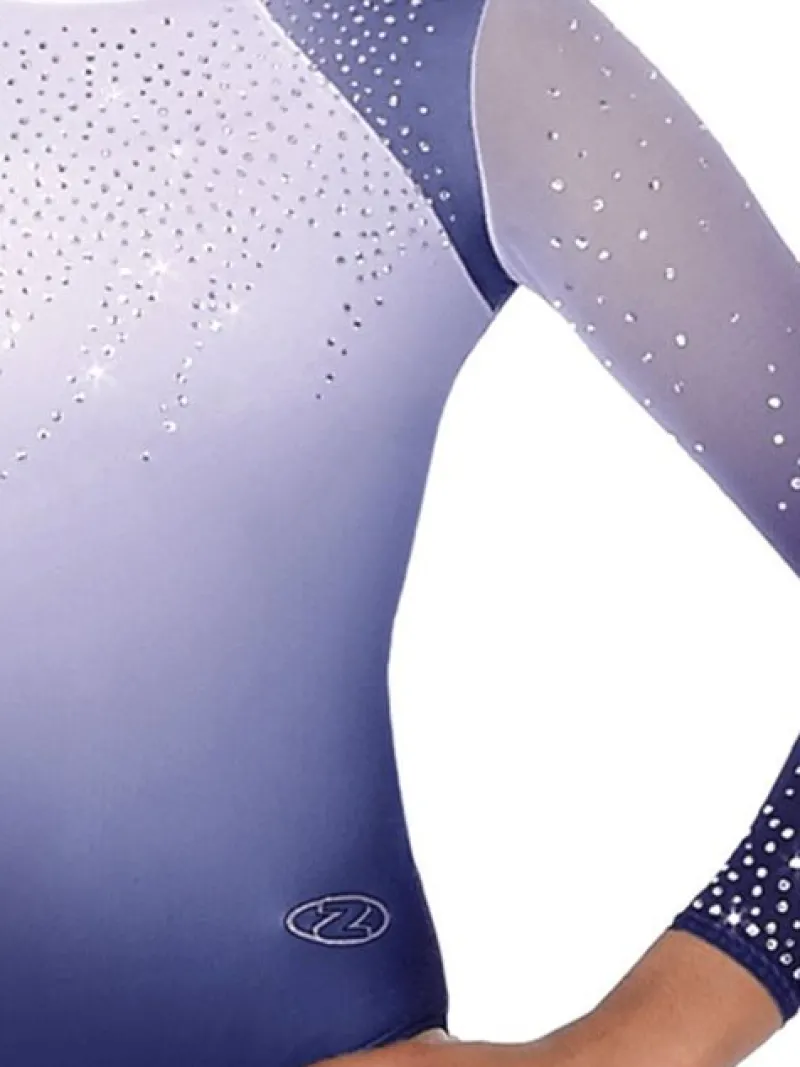 The zone navy og hvid meget flot gymnastikdragt til piger. Masser af flotte farvede rhinsten på front, ryg og de lange mesh ærmer
