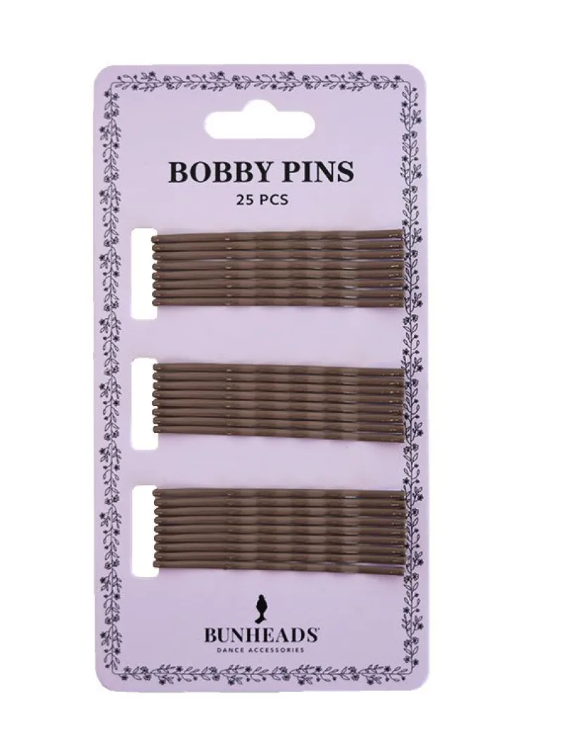 Pakke med 25 stk Bunheads hårnåle i lys brun. 5,5 cm lange