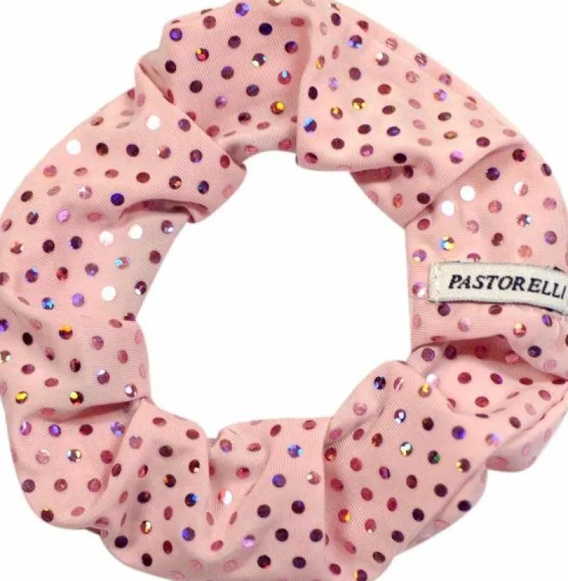 Lyserød scrunchie med trykte rhinsten til gymnastik, ballet og dans